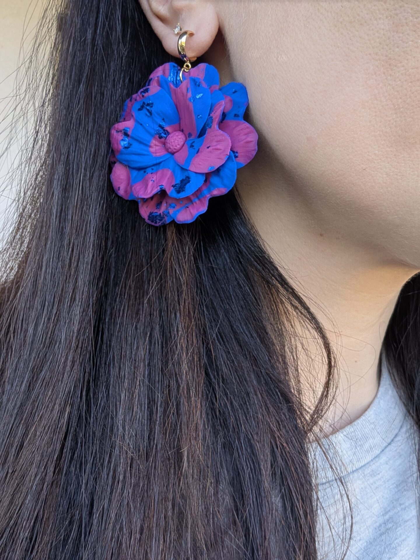 Chaque paire est modelée à la main en argile polymère, pétale après pétale.