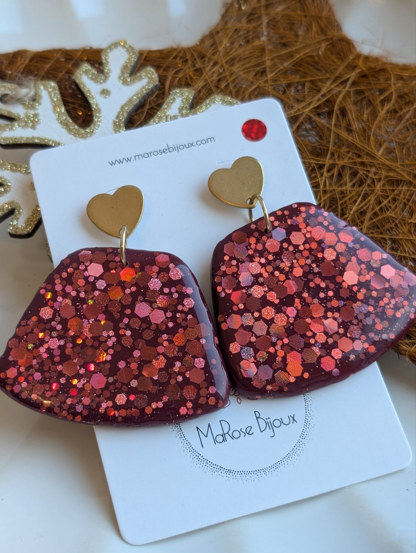 Des pièces uniques façonnées à la main en argile polymère, où le bordeaux profond se dévoile dans les reflets de la lumière.