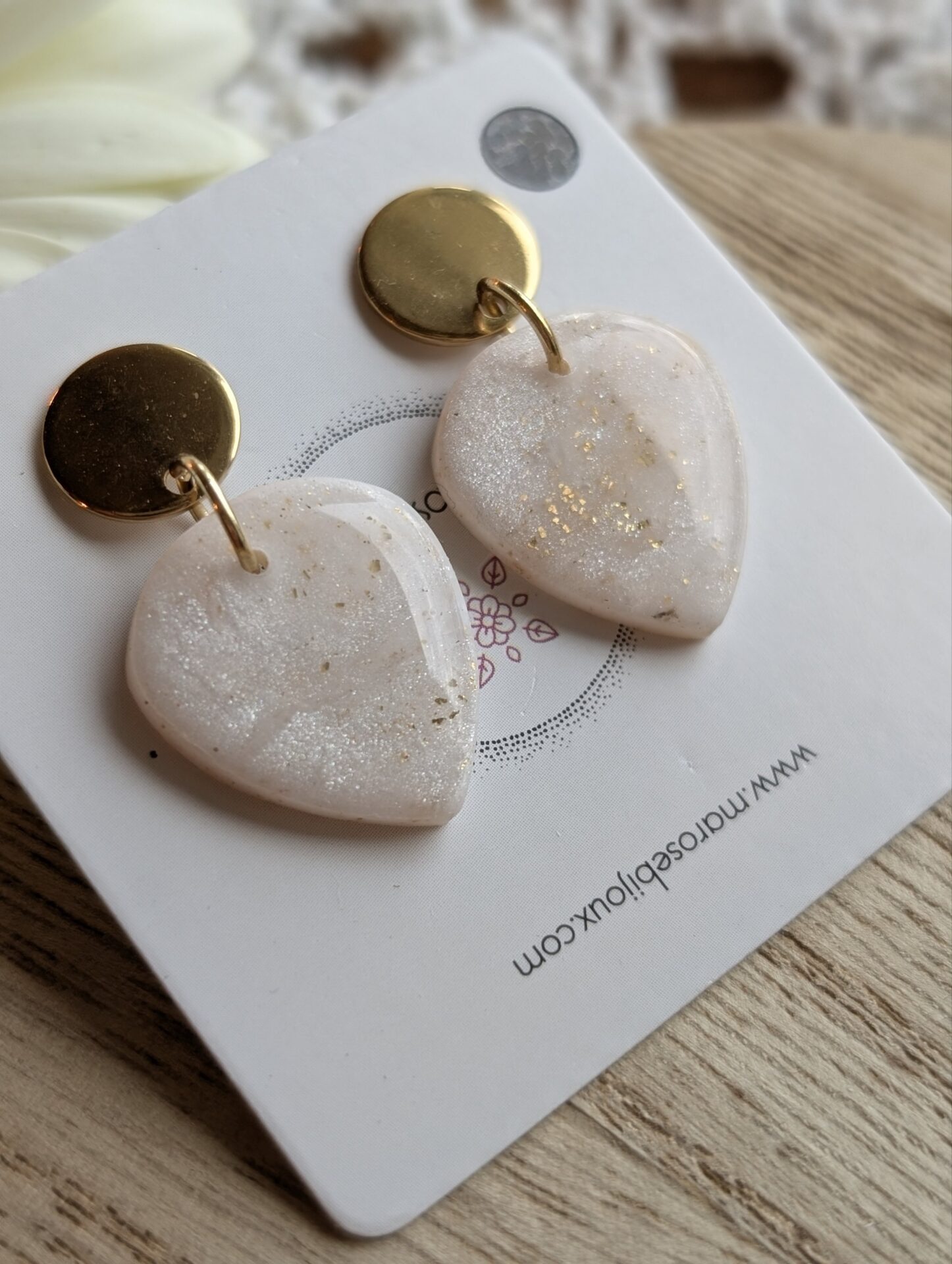 Des boucles d’oreilles élégantes et intemporelles, façonnées à la main en argile polymère.