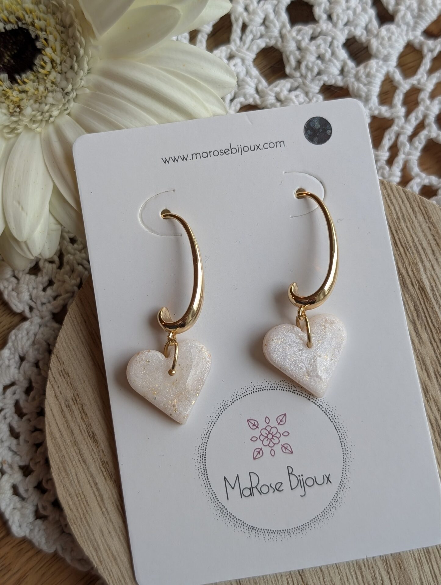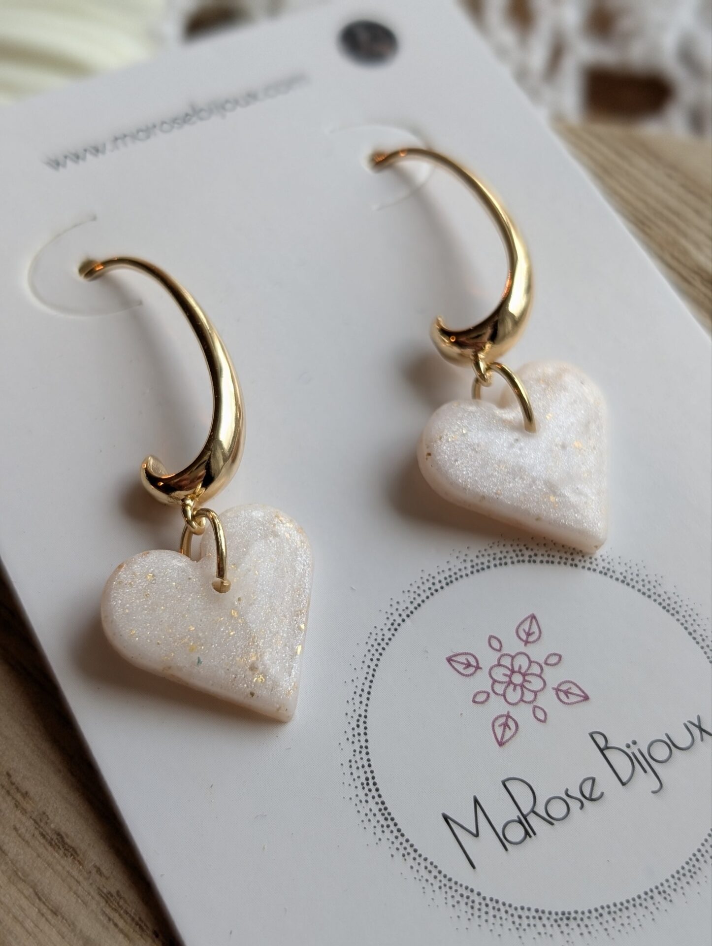 Des boucles d’oreilles élégantes et intemporelles, façonnées à la main en argile polymère.