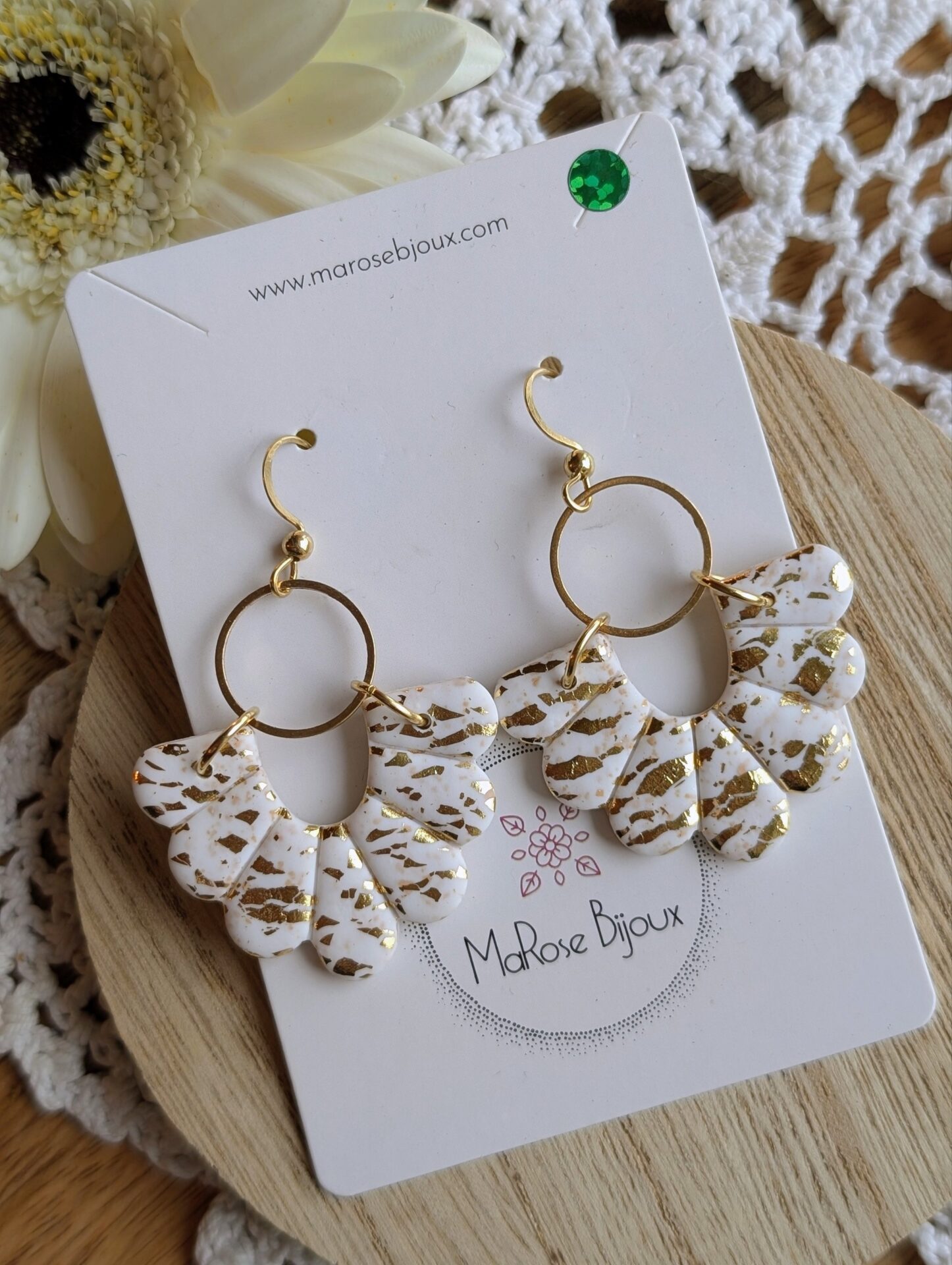 Des boucles d’oreilles élégantes et intemporelles, façonnées à la main en argile polymère.