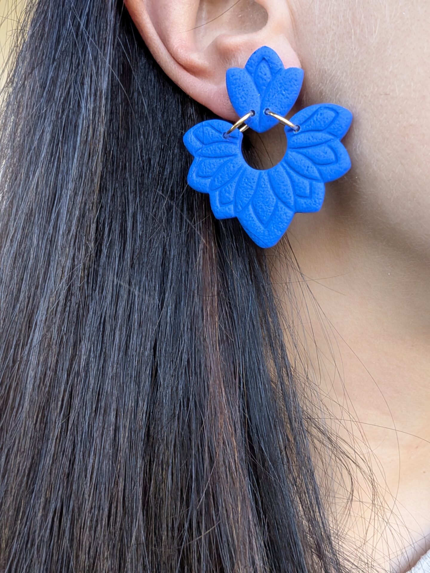 Boucles d’oreilles en argile polymère, modelées et texturées à la main.