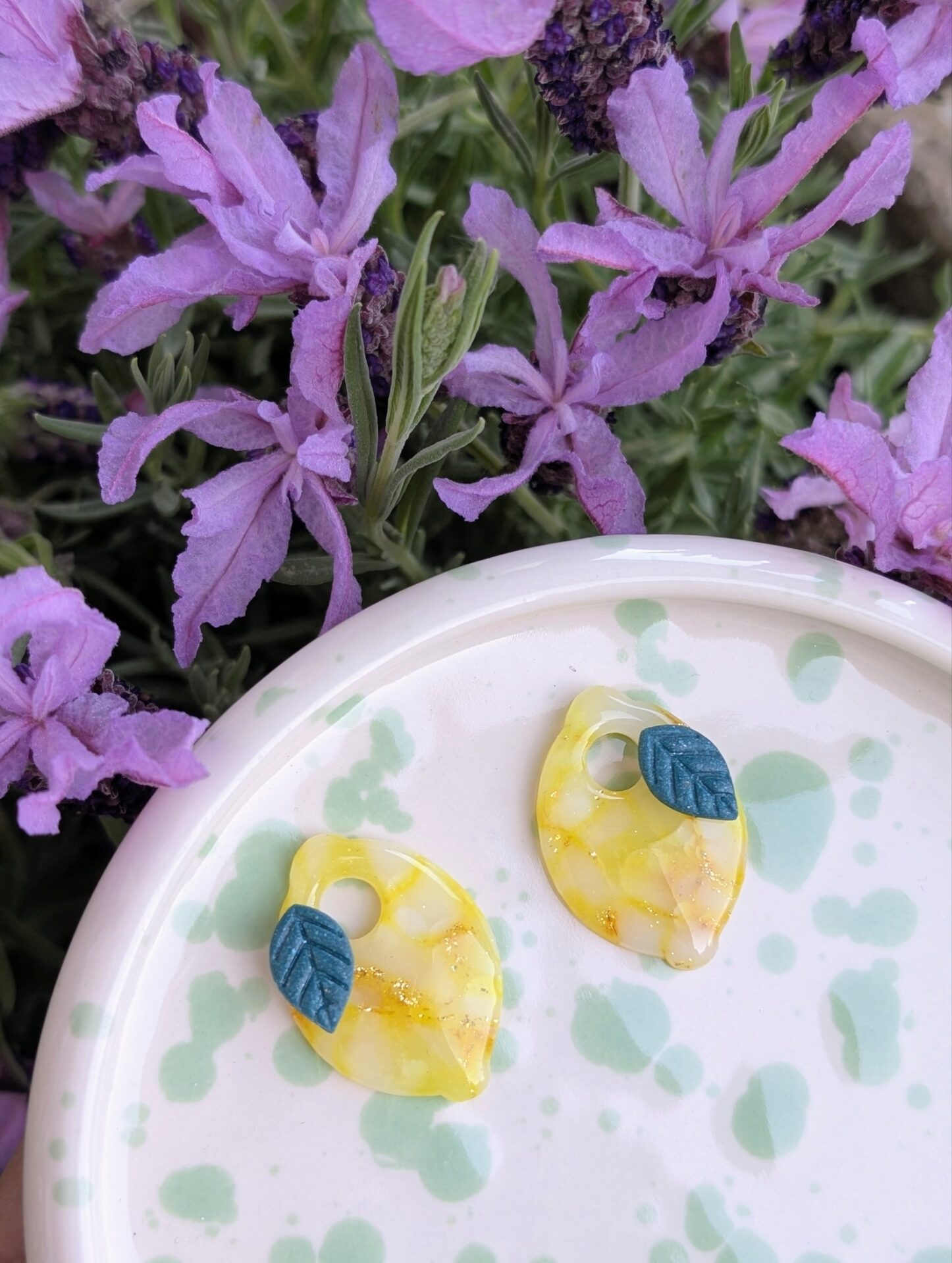 Pampille Citron vernis, marbré jaune et feuilles d’or